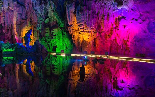 太乙洞相傳是太乙真人下凡為治理水患,造福民眾掘鑿的過水涵洞。主洞全長2000余米,有支洞8條,大小景點100余處。這些自洞頂向下垂懸的石頭叫“鐘乳”,從地面向上生長的叫“石筍”,這種奇特的景觀必須經過漫長的歲月才能孕育而成,堅持不懈,平凡也能變卓越。